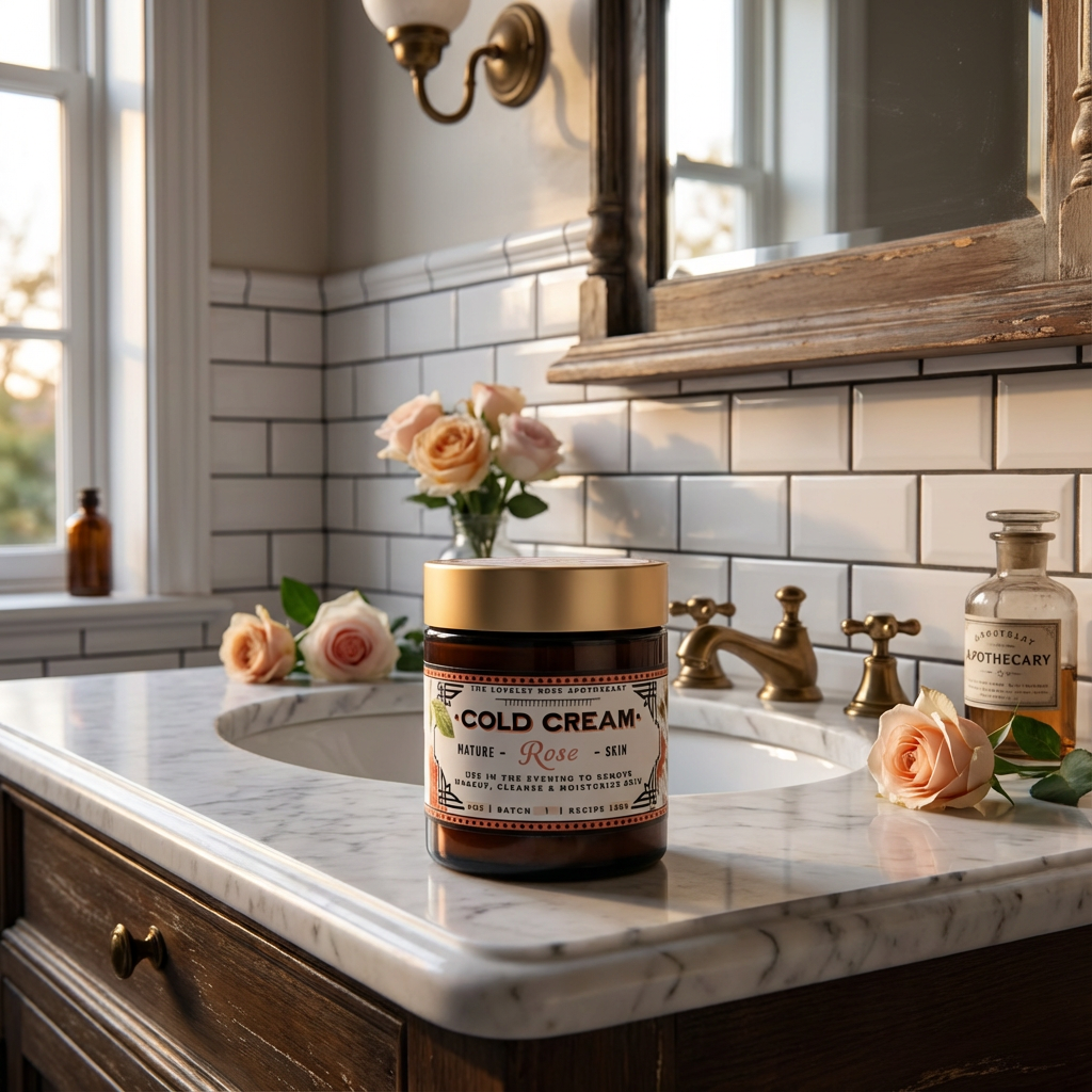 Transform your evening routine into a moment of pure indulgence. Based on an authentic 1940s recipe, our Rose Cold Cream combines makeup remover, deep cleanser, and moisturizer in one luxurious formula. It's everything your skin needs—and nothing it doesn't.