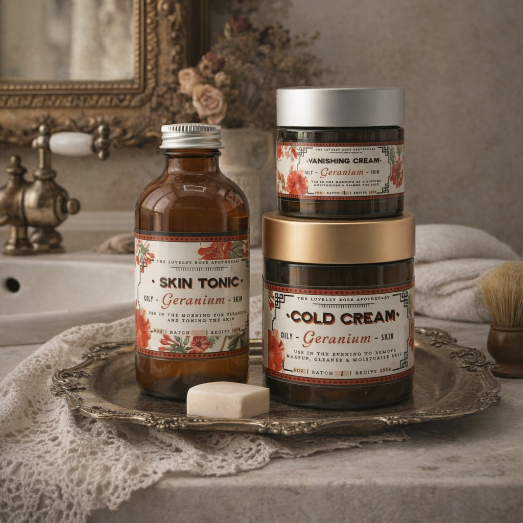 Geranium Vanishing Cream Ingredients: Stearic acid, Geranium hydrosol, Glycerin, Potassium hydroxide, Perilla seed oil, Red raspberry seed oil, Geranium essential oil, Linaturel (preservative) 2oz